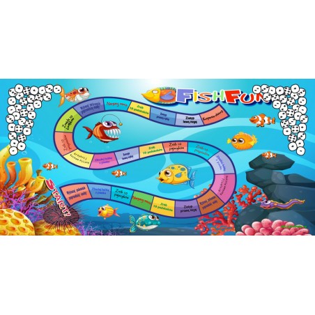 Ilość plusów mówi nam o ilości ruchów do przodu a ilość minusów o ilości ruchów do tyłu i tak przesuwamy swoje pionki na polu z zadaniami . Gracz powinien wykonać zadanie na którym postawił swój pionek. W grę można grać od startu do mety i z powrotem.