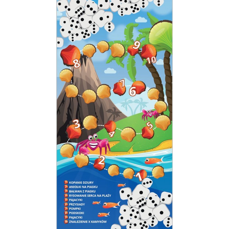 Ilość kropek równa się ilości ruchów do przodu tak przesuwamy swój pionek na pole ,trafiając na pole z cyfrą powinniśmy wykonać zadanie przypisane do cyfry od (1 do 10).